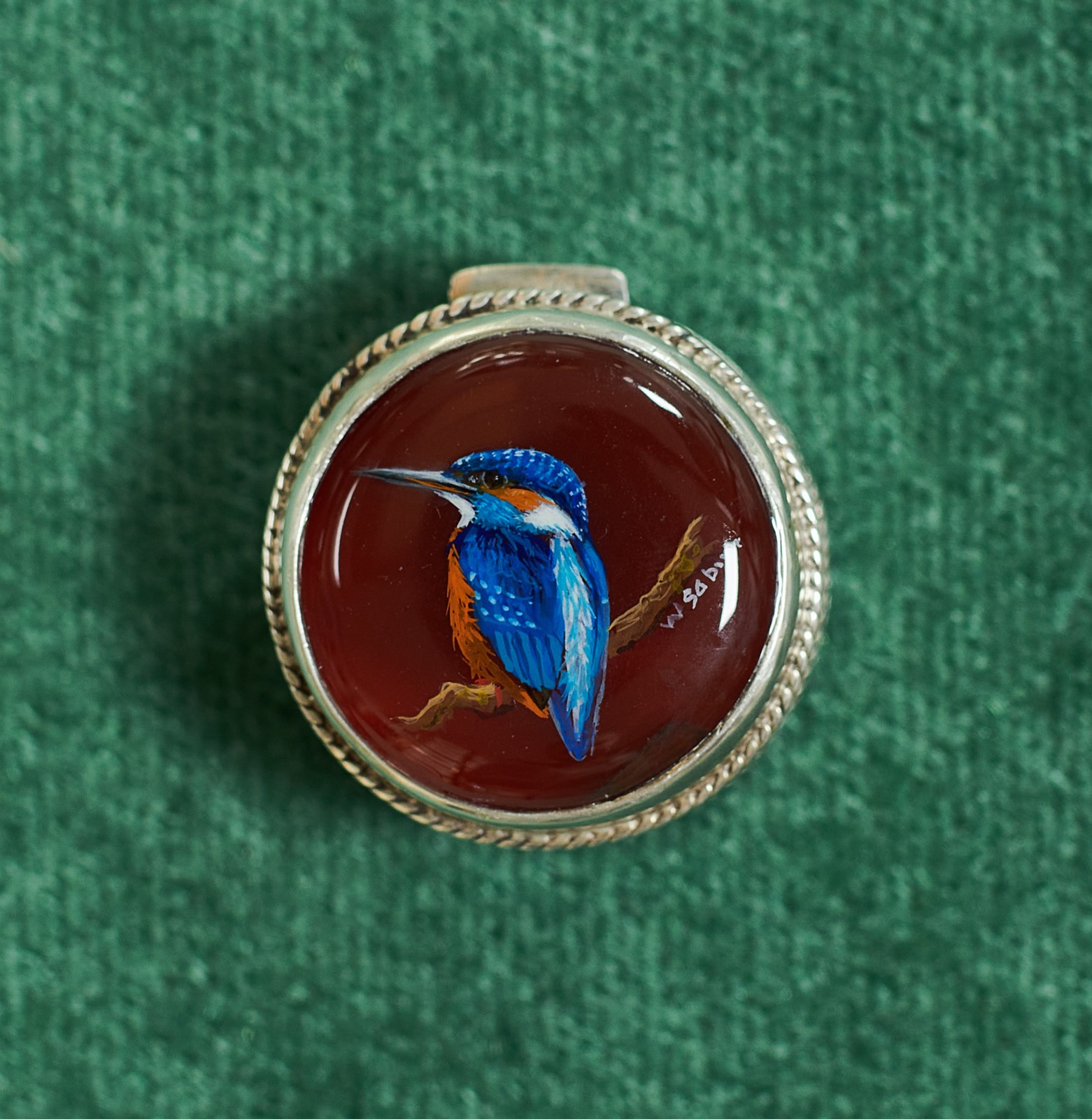 SC28 Kingfisher Gouache & resin on agate & silver box 110